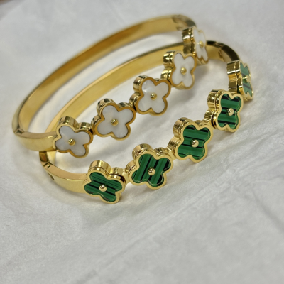 Fashion white shell green four-leaf clover titanium steel bracelet women's non-fading bracelet