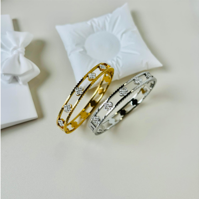Stainless steel drill hollowed four-leaf clover bracelet gold silver lucky grass bracelet
